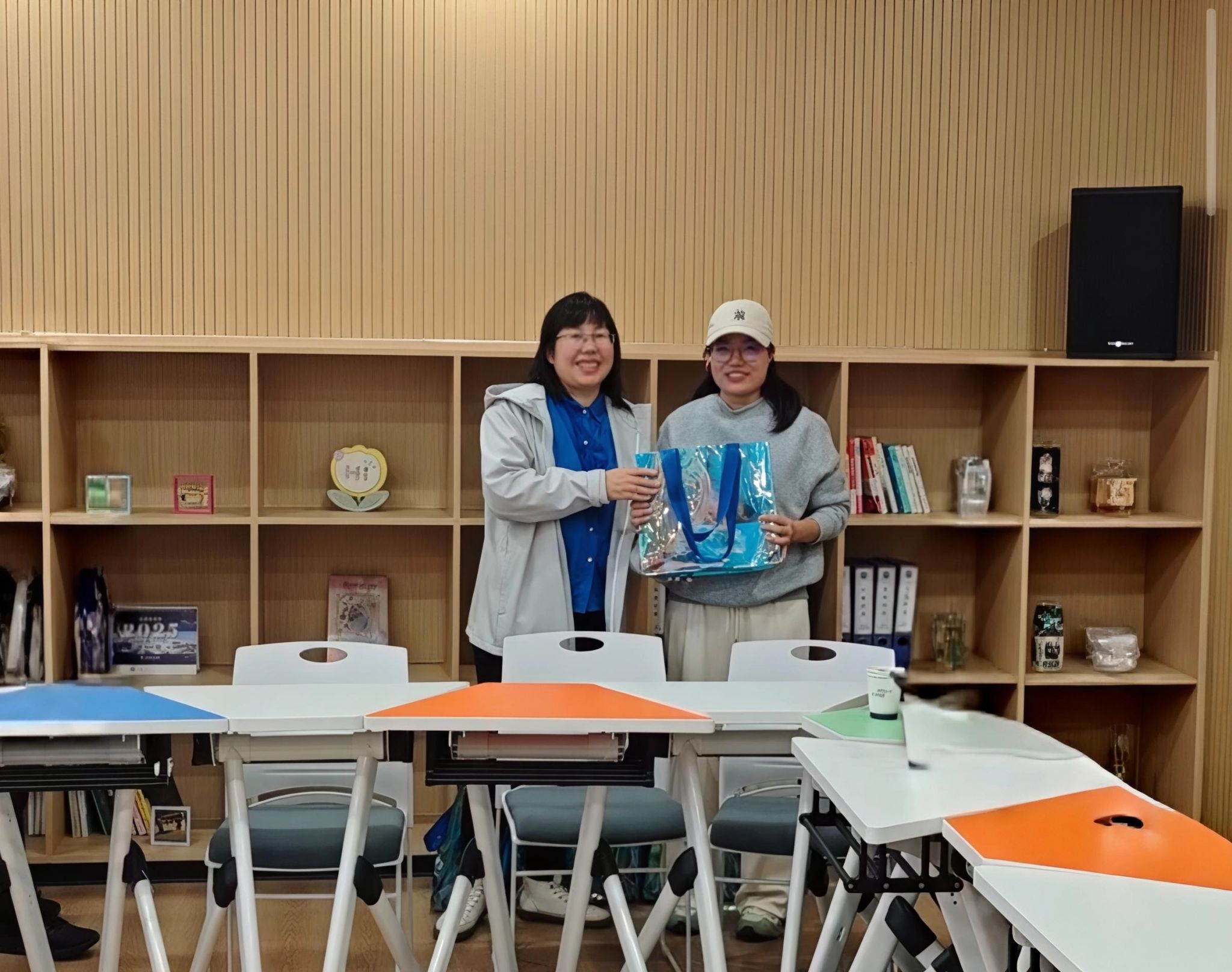 座谈会尾声,高霞代表学院为每位返校校友发放定制纪念品,一份份承载着母校关怀与学院祝福的礼物,让校友们感受到“回家”的温暖。