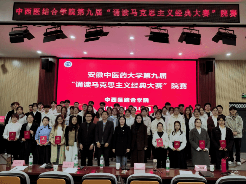 诵读马列经典,洞见真理之光。11月13日,中西医结合学院第九届“诵读马克思主义经典大赛”院赛在至精楼B254报告厅举行。本次大赛特邀马克思主义学院“马克思主义中国化”教研室陈书华老师、“中国近现代史纲要”教研室李秋晨老师,学院党委副书记彭青和、行政办主任云大清老师担任评委,学院2024级8个班级参加比赛。