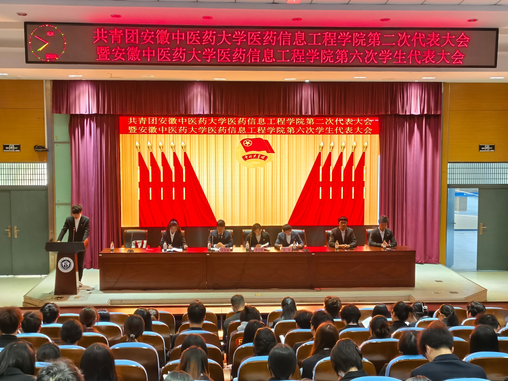 11月20日,共青团安徽中医药大学医药信息工程学院第二次代表大会暨安徽中医药大学医药信息工程学院第六次学生代表大会隆重举行。本次大会以“书写青春华章、贡献青年力量”为主题,旨在总结学院过往团学工作成效,共商学院团学事业高质量发展大计,进一步凝聚青年共识、汇聚奋进力量,引领全院青年在学院事业发展和人才培养大局中勇担使命、再建新功。医药信息工程学院学院党委书记高霞,学校团委副书记杨浩出席会议并讲话,学院党委副书记、纪委书记王向阳,各办公室负责人,辅导员老师以及全体团代表、学代表参加会议。