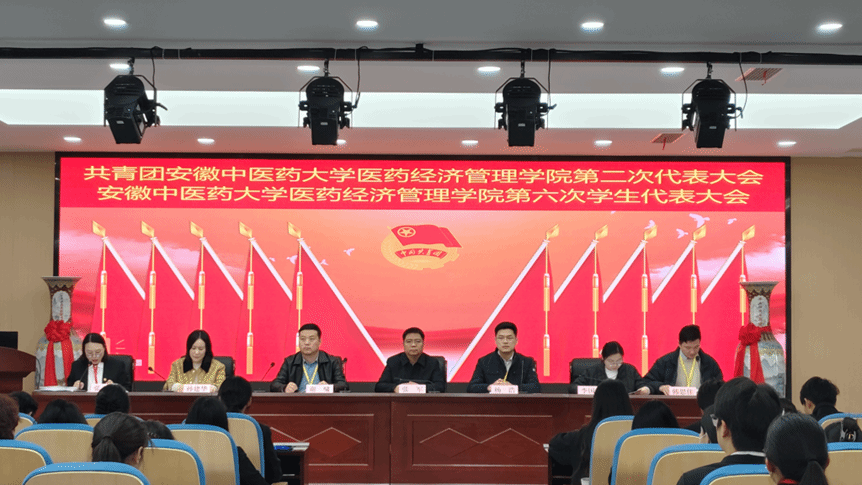 11月21日,共青团安徽中医药大学医药经济管理学院第二次代表大会、安徽中医药大学医药经济管理学院第六次学生代表大会在学院429报告厅召开。校团委副书记杨浩、医药经济管理学院党委书记张军、党委副书记谢啸、学院全体辅导员及118名学生代表共同出席大会。会议由学院团委负责人张亚丽主持。