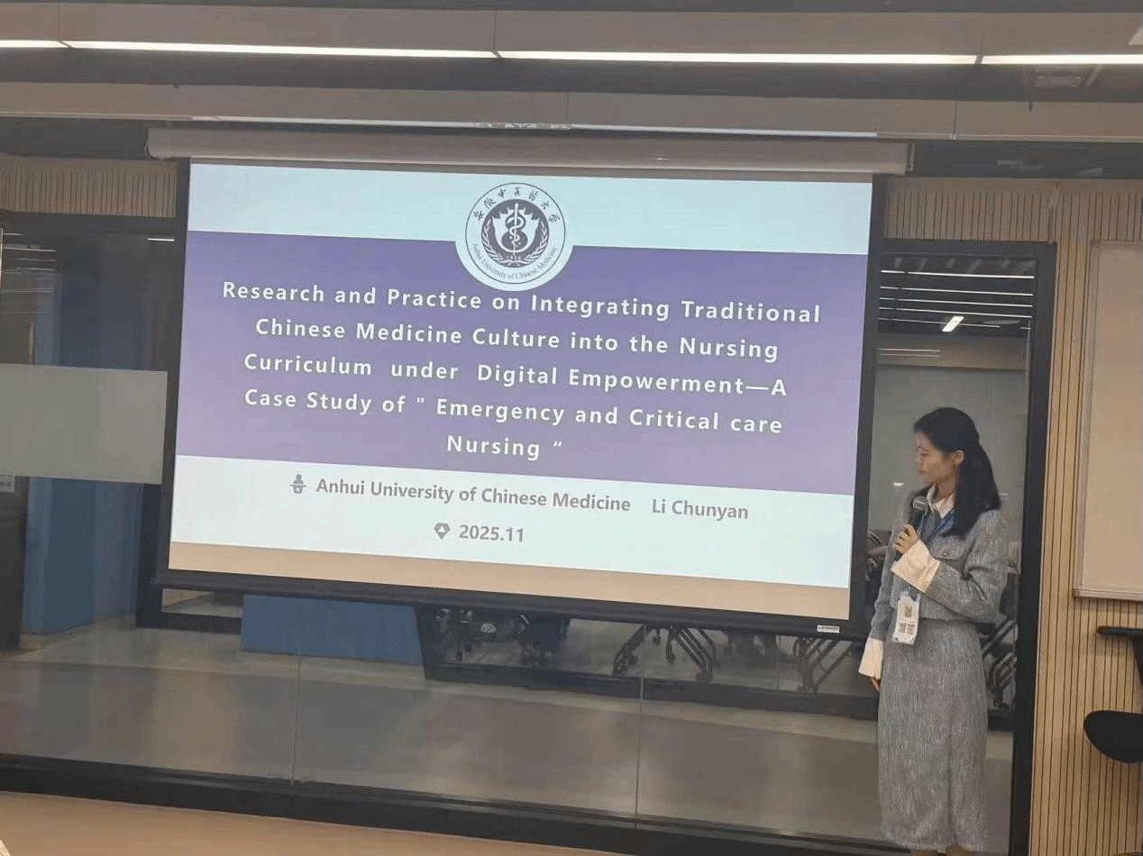 本次会议采取“主会场+分会场”形式举行,大会围绕数字健康平台建设、人工智能辅助临床决策、智慧护理教育与公共卫生服务模式创新等设置主旨演讲和专题讨论。在 “Nursing Education in Digital Era” 主题分会场中,学院教师李春燕受邀作题为 “Research and Practice on Integrating Traditional Chinese Medicine Culture into the Nursing Curriculum under Digital Empowerment—A Case Study of " Emergency and Critical care Nursing” 的口头报告,介绍了数字赋能背景下中医药文化融入急危重症护理学的教学实践,获得现场专家与同行的积极评价。