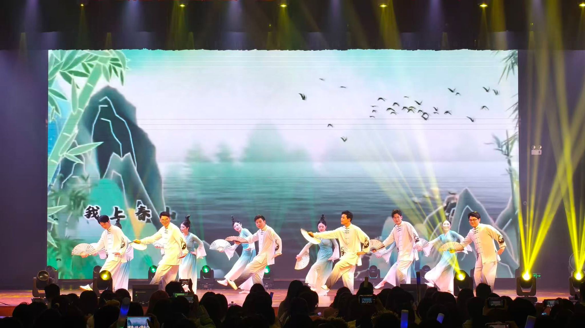 现场气氛热烈高涨,晚会以“杏林新韵 青春启航”、“初心弥坚 仁心砺炼”、“远志凌云 使命担当”三大篇章串联起多元精彩,青年艺术中心乐队演绎的《重楼》激昂澎湃,燃动全场;群舞《森林之子》灵动飘逸,尽显青春活力;《武韵风华》刚柔并济,彰显传统武术魅力;古典舞《清庭云月》典雅端庄,尽显东方之美;歌曲串烧《童年》唤醒共同记忆,引发全场共鸣;教职工节目精彩纷呈,双人对唱《生命的光亮》温情脉脉,传递师者担当与育人初心,舞蹈《上春山》活力四射,尽显青春朝气。晚会穿插三轮抽奖环节点燃全场热情,幸运学子登台领奖,笑意盈盈,现场掌声与欢呼声此起彼伏,为晚会增添满满温情与惊喜。
