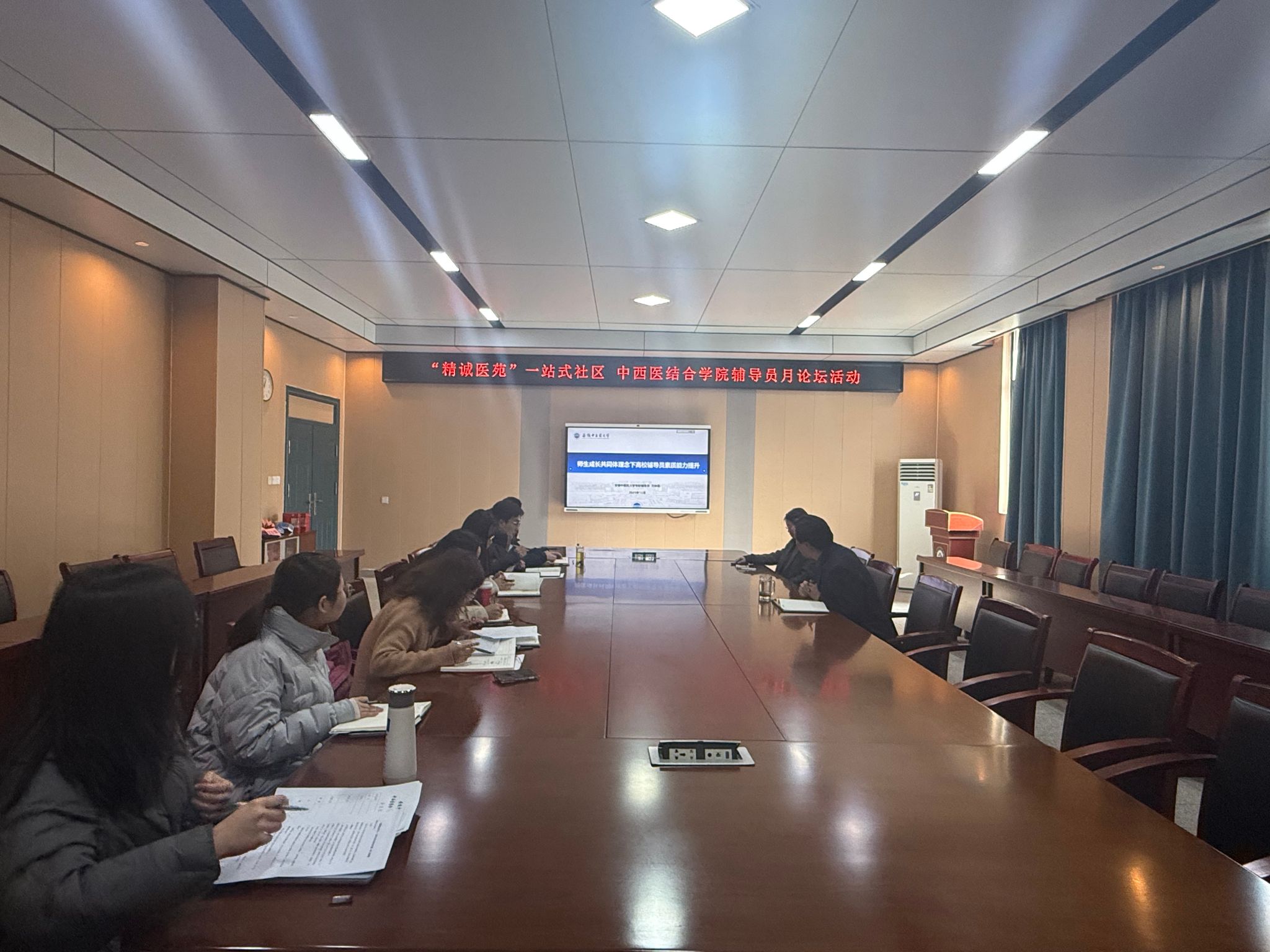 为进一步提升辅导员队伍的专业素养与综合能力,12月15日中午,中西医结合学院在学院216会议室举办第8期辅导员月论坛活动。本次论坛以“师生成长共同体理念下高校辅导员素质能力提升”为主题,特邀第一临床医学院专职辅导员方林莉老师担任主讲。本次活动由学院党委副书记彭青和主持,全体辅导员参加了学习交流。