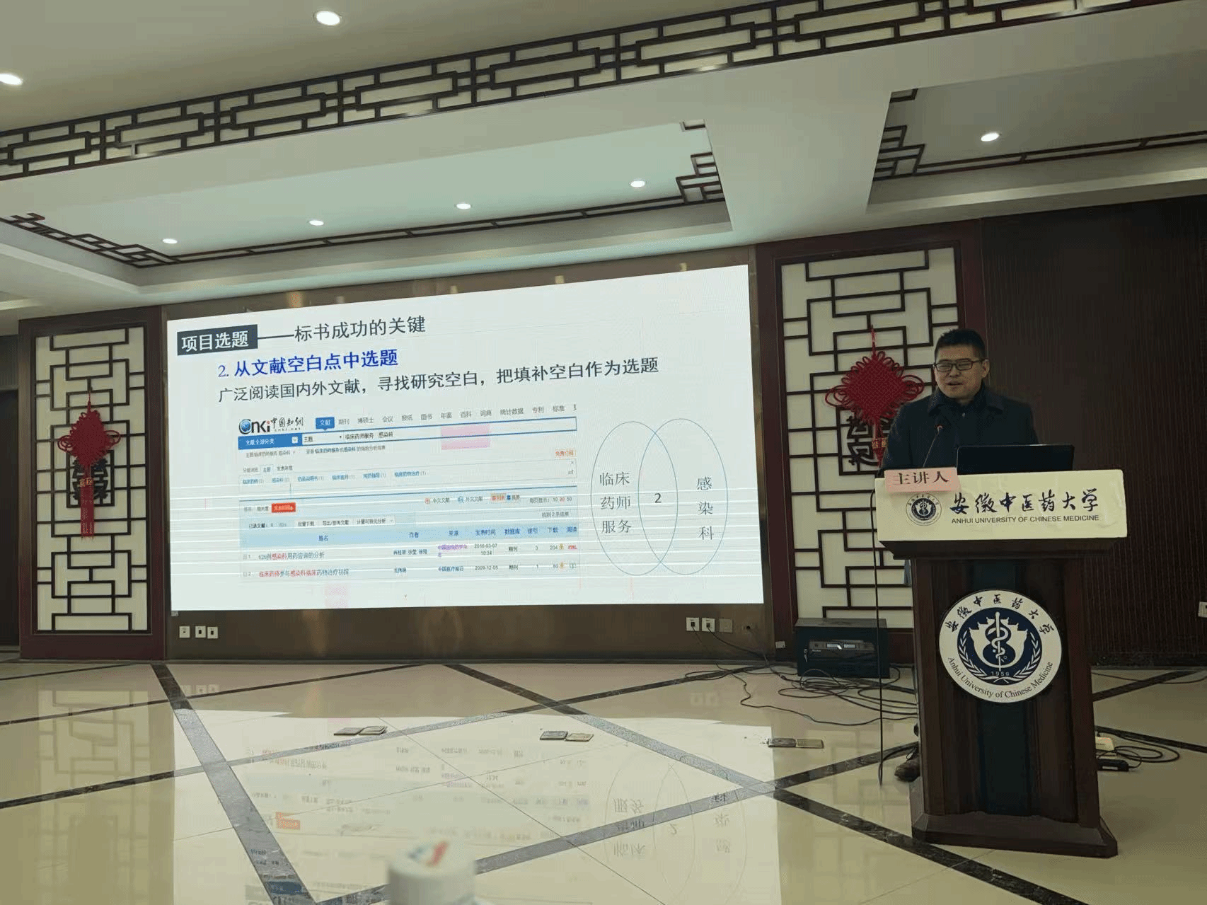 会议由药学院执行院长韩岚主持,除报告专家外,还邀请中国中医科学院林娜首席研究员,学校副校长桂双英教授、刘吉开教授、杨小龙教授、吴虹教授、李真宝教授共同参加指导,药学院2026年申报基金项目全体老师与部分研究生参加学习。