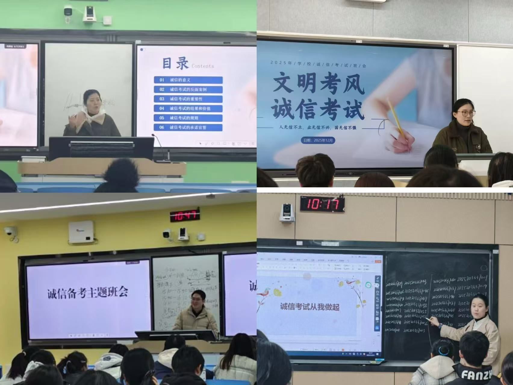 此次系列主题班会的召开,有效提升了同学们的诚信意识和纪律观念,为即将到来的研究生考试和期末考试营造了风清气正的良好氛围。同学们纷纷表示,必将以诚信为帆,以实力为桨,在考场上奋力拼搏,争取优异成绩。(于芳春/文 各班级/图 唐巍/审核)