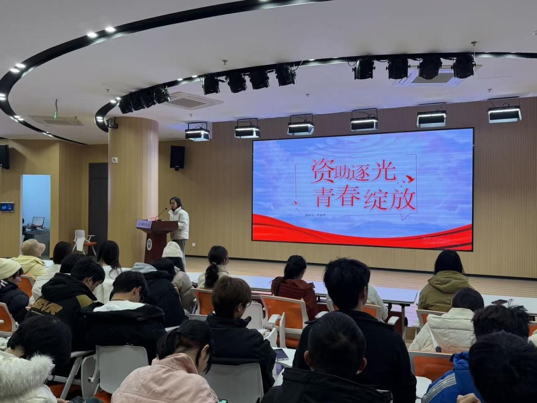 为发挥榜样示范引领作用,传递自立自强、励志成才的精神力量,进一步推动资助育人工作走深走实,12 月 17 日,人文与国际教育交流学院在学校“一站式岐黄社区” 路演大厅成功举办第十六届优秀大学生事迹暨“精诚资助大使”宣讲会。学院党总支副书记顾义俊主持会议,学院新生辅导员、优秀学生代表及 2025 级全体本科生、硕士生新生参加本次活动。