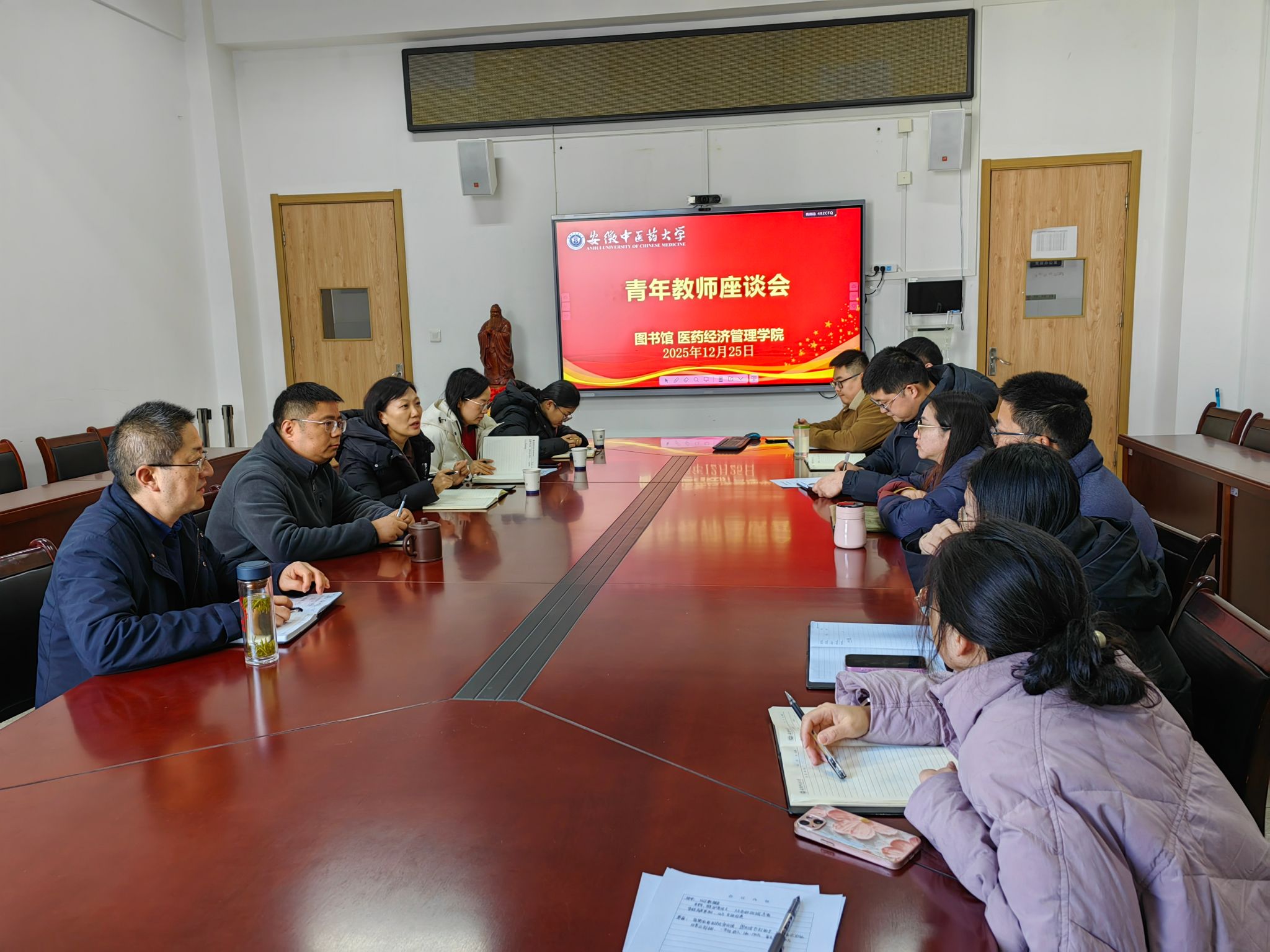 为切实回应青年教师在科研过程中面临的文献检索与获取难题,进一步优化学术资源支撑体系,12月25日,医药经济管理学院组织召开青年教师专题座谈会,围绕文献数据库建设与服务提升开展深入交流。学校图书馆副馆长黄莉、信息咨询部主任漆胜兰、副主任叶红应邀参会,学院党政领导及青年教师代表共同参与研讨。