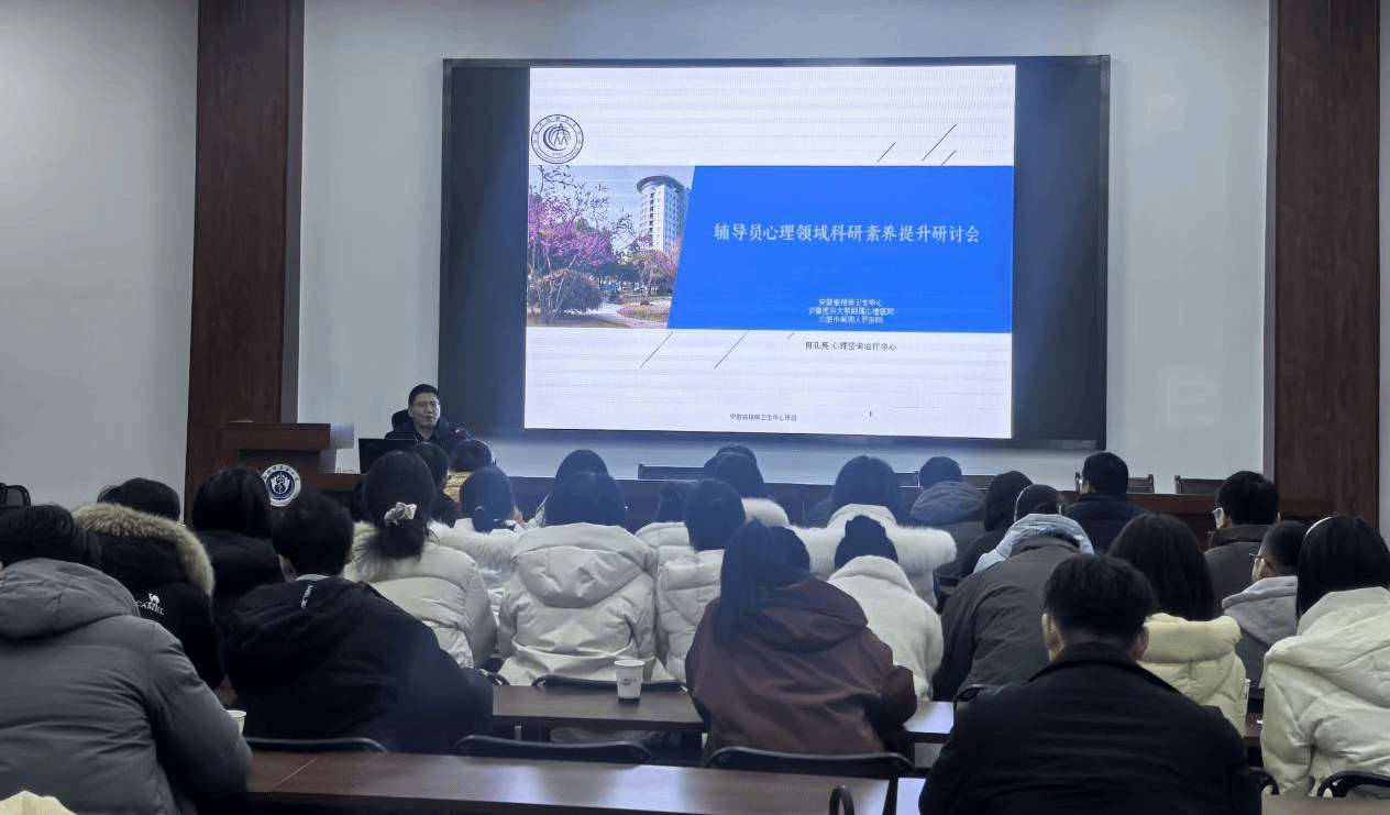 为加强我校心理健康教育工作队伍建设,提升辅导员在心理领域的科研能力,学生处于1月19日特邀合肥市第四人民医院何孔亮主任来校,与各学院共70余名辅导员共同开展“医校协同——心理领域科研素养提升” 的专题研讨会。