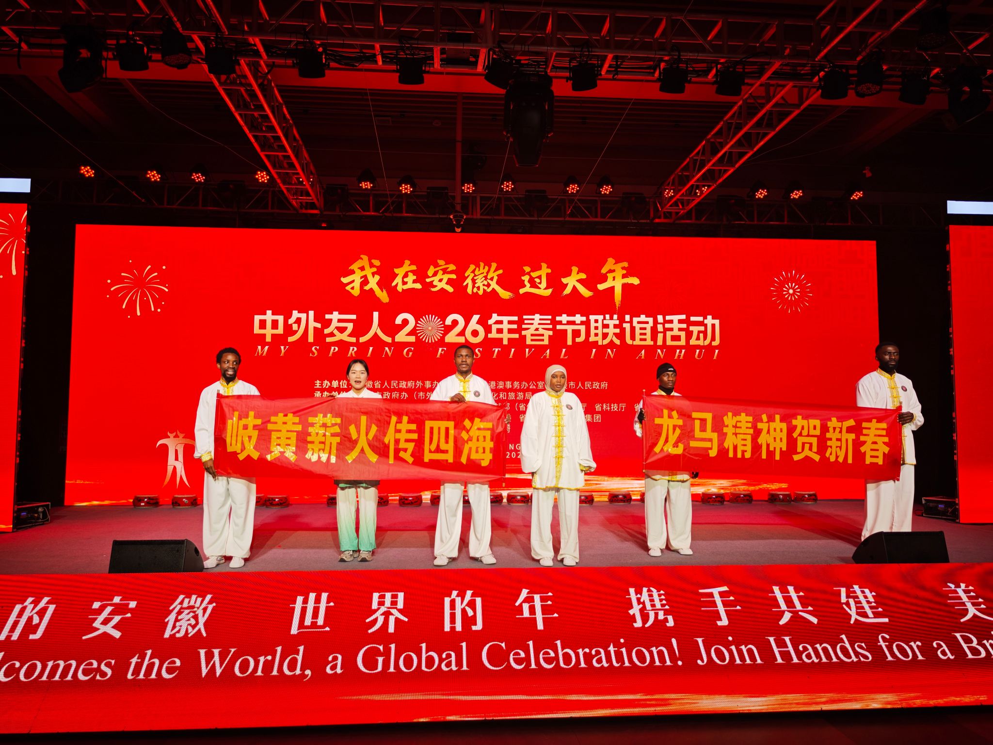 1月23日,由安徽省人民政府外事办公室(省港澳办)与铜陵市人民政府联合主办的“我在安徽过大年”中外友人2026年春节联谊活动在铜陵市义安区犁桥水镇圆满举行 。人文与国际教育交流学院党总支副书记顾义俊带队,体育健康学院李紫薇老师、国际学生辅导员魏子琦及5名国际学生参加了活动。