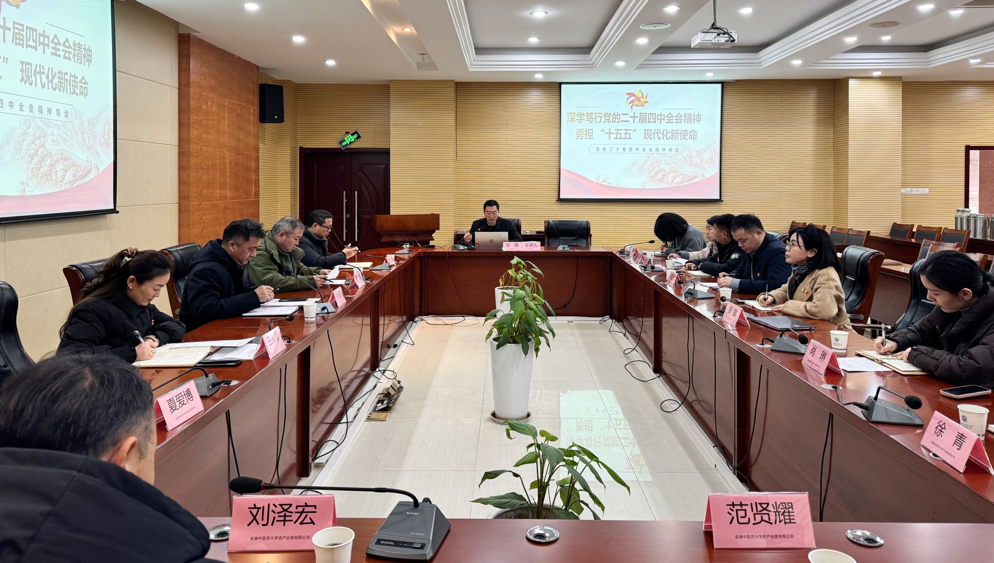 1月23日下午,资产经营有限公司召开2026年1月党委理论学习中心组(扩大)学习会暨民主生活会专题学习会。会议邀请学校党委宣传部副部长张磊作党的二十届四中全会精神宣讲,公司党委委员、副总经理、党支部书记,以及党群部、综合办负责人参加会议。会议由公司党委书记、董事长孙道礼主持。