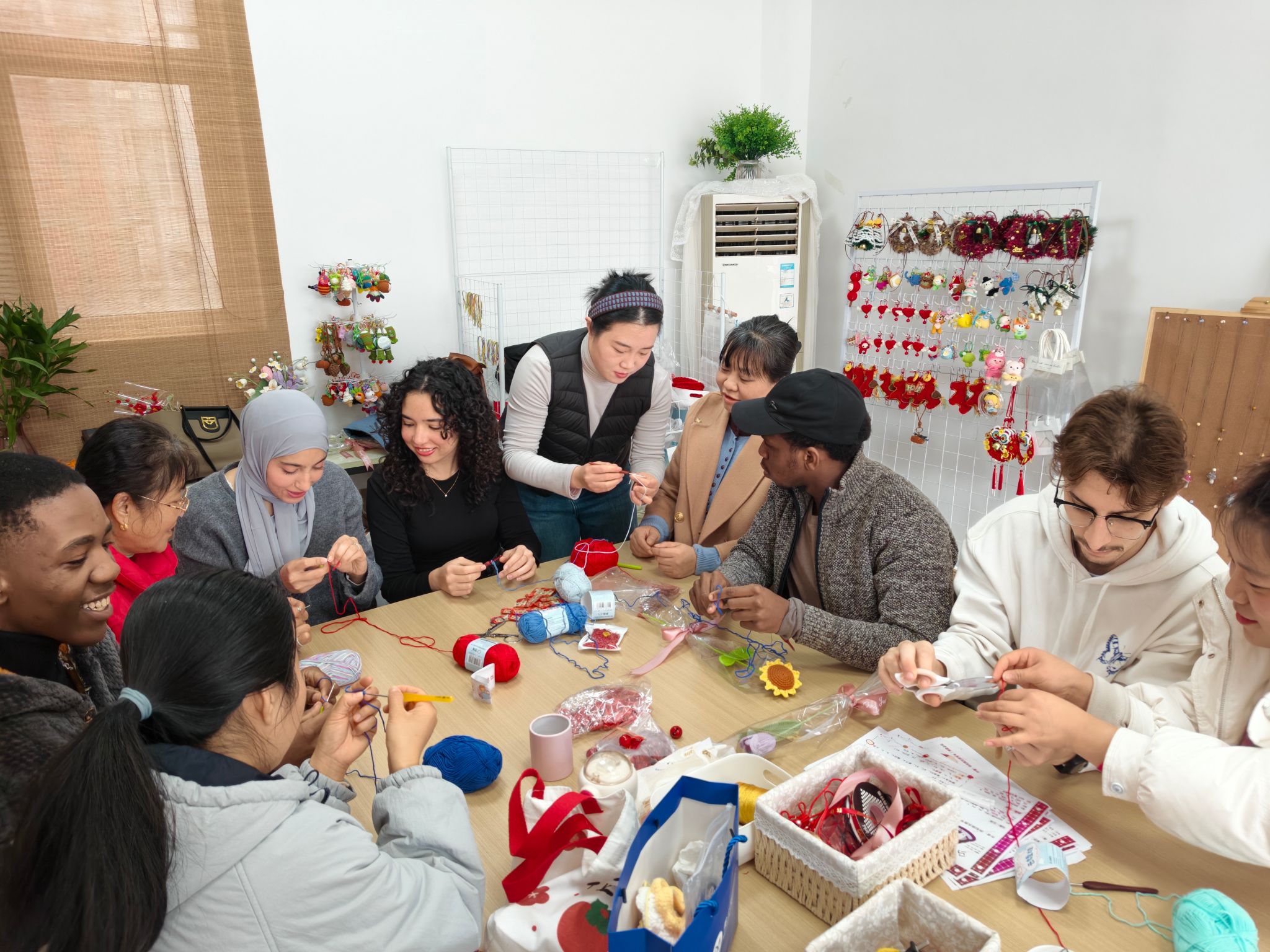 1月30日上午,人文与国际教育交流学院组织6名国际学生,在许晶晶、程玲和魏子琦老师的带领下,前往瑶海社区浍爱编织坊,参与“编织传情,文化交融”主题文化体验活动,并在活动后接受了合肥电视台的采访。