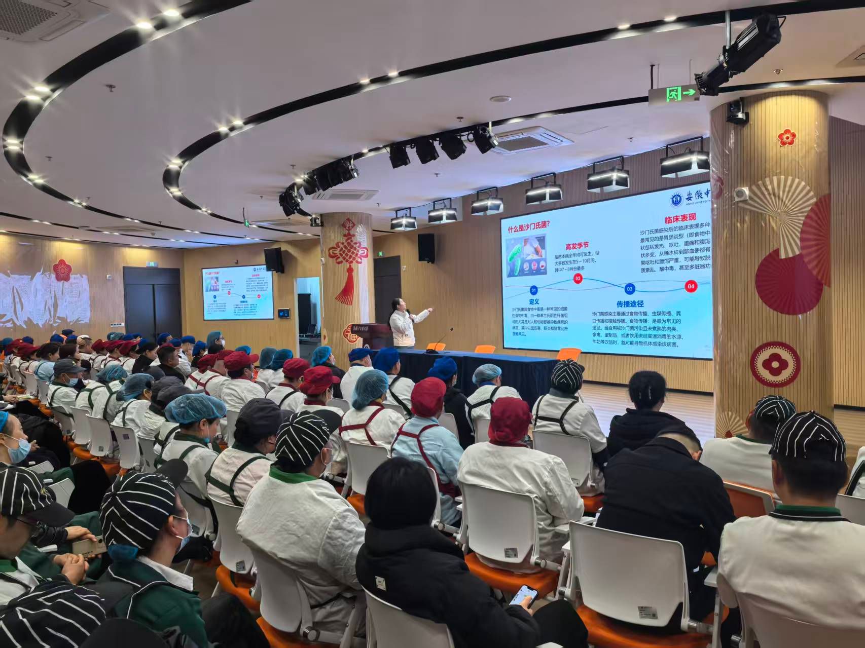 本次培训内容紧贴校园食品安全工作实际、靶向性极强,系统讲解开学准备全流程操作规范,涵盖食堂清洁消杀、设施设备检修、从业人员健康管理、原料采购验收、食品留样规范及制度体系梳理等关键环节,并逐一明确实操细则;同时聚焦高发疾病与风险防控重点,深入讲解沙门氏菌感染的传播途径与预防措施,细化虫鼠害防治、食物中毒应急处置等核心要点,着力提升食堂突发事件应对能力;此外还围绕大宗食材采购验收管理展开专题授课,组织学习最新管理文件。
