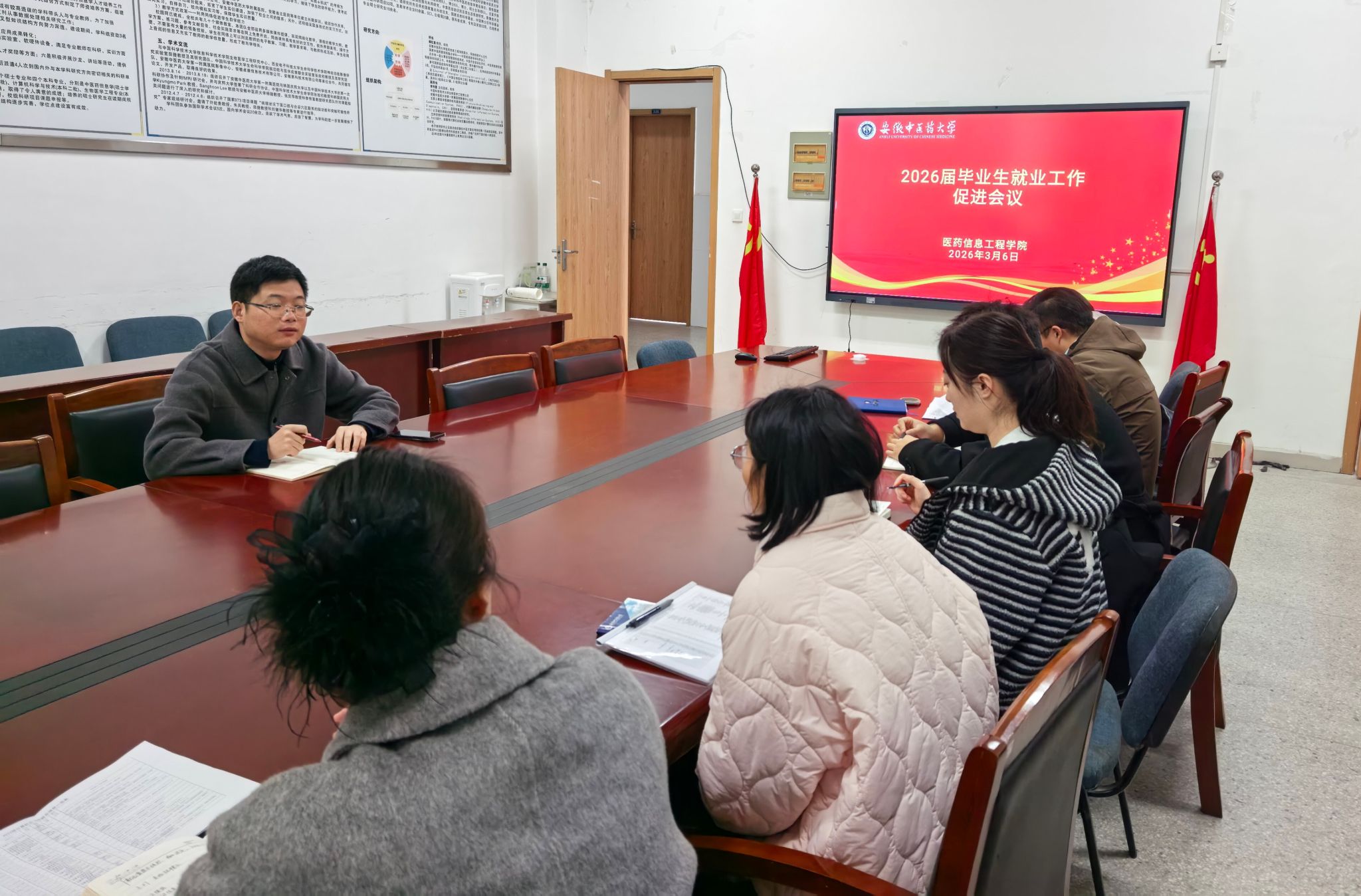 为深入贯彻落实党中央、国务院关于高校毕业生就业创业和征兵工作的各项决策部署,压实工作责任,细化工作举措,切实做好2026届毕业生就业创业、征兵及考研复试等相关工作,3月6日,医药信息工程学院召开2026届毕业生就业创业、征兵工作促进会。会议由学院党委副书记王向阳主持,全体毕业班辅导员参加会议。