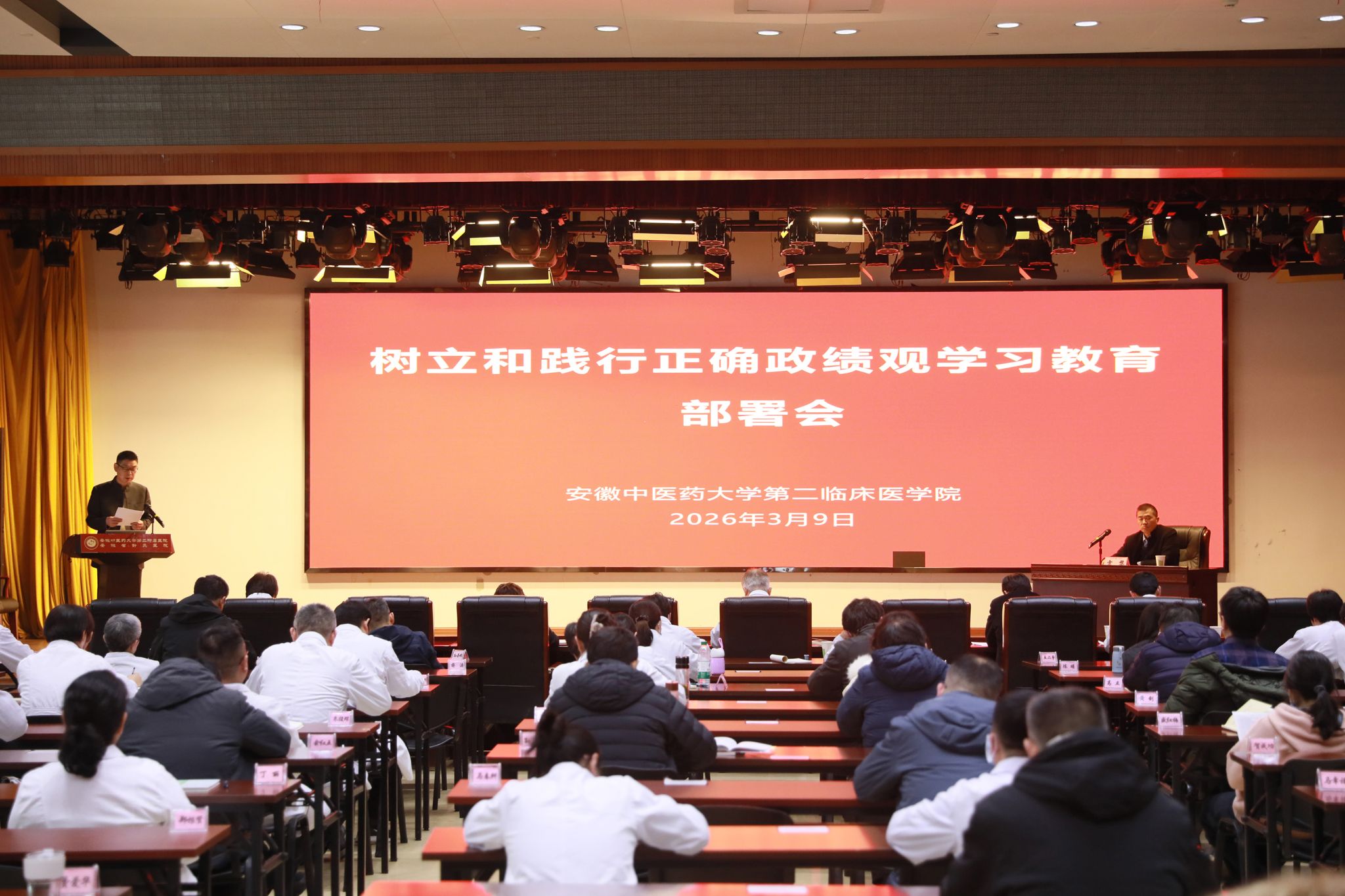 3月9日下午,第二附属医院召开树立和践行正确政绩观学习教育部署会。医院党政班子成员、各基层党组织书记以及各科室主要负责人参加会议。医院党委书记雷黎主持会议。