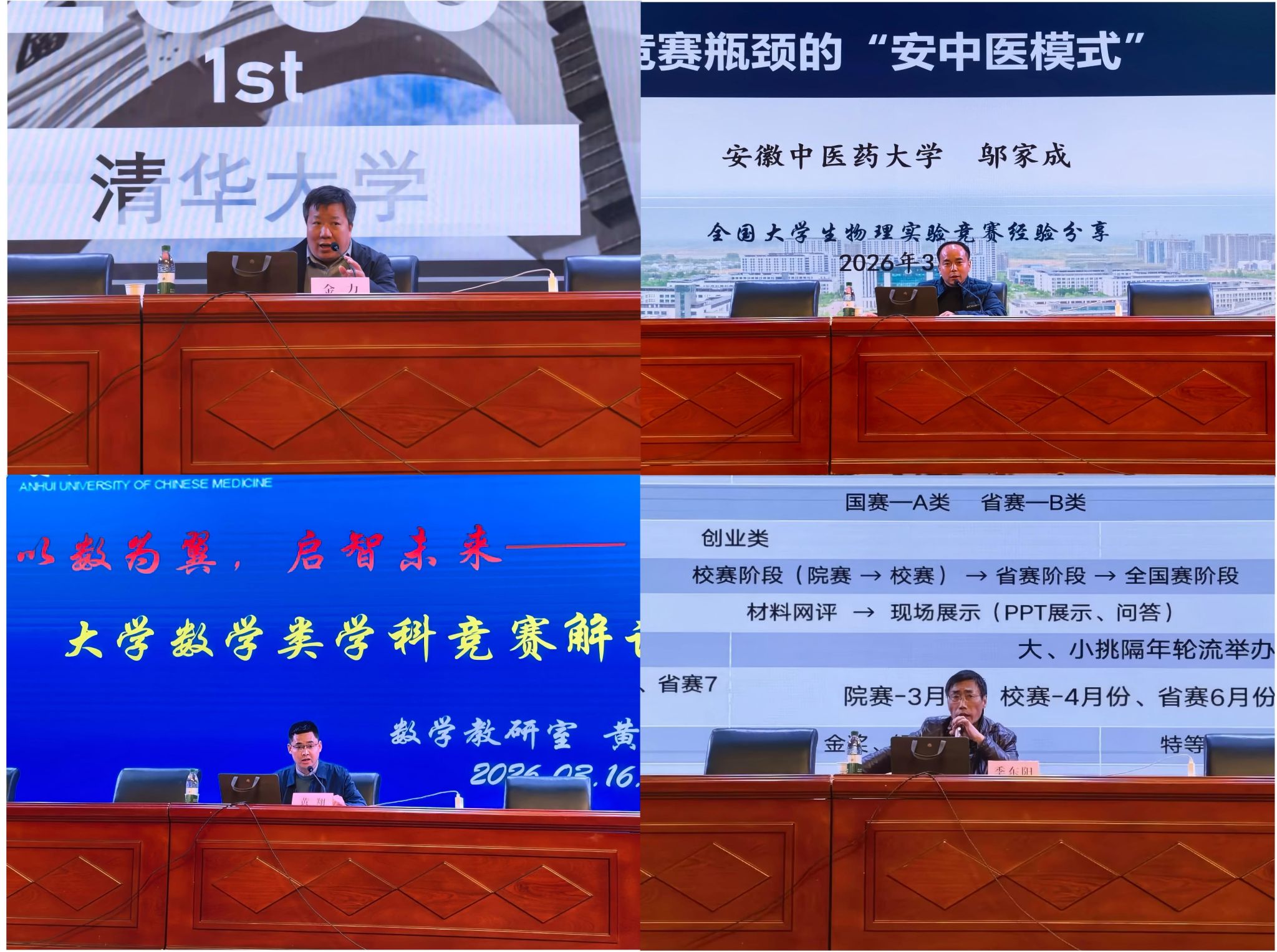 本次宣讲交流会邀请了医药信息工程学院金力老师、邬家成老师、黄翔老师和校团委季东阳老师围绕全国大学生智能汽车竞赛、物理实验竞赛、数学类竞赛,以及中国国际大学生创新大赛(原“互联网+”)、挑战杯等系列赛事分享各自宝贵的指导心得与实战经验。内容既涵盖了对各大赛事特点、评审规则的深度剖析,也结合具体案例,生动讲解了团队构建、选题策略、备赛技巧及答辩要领等。