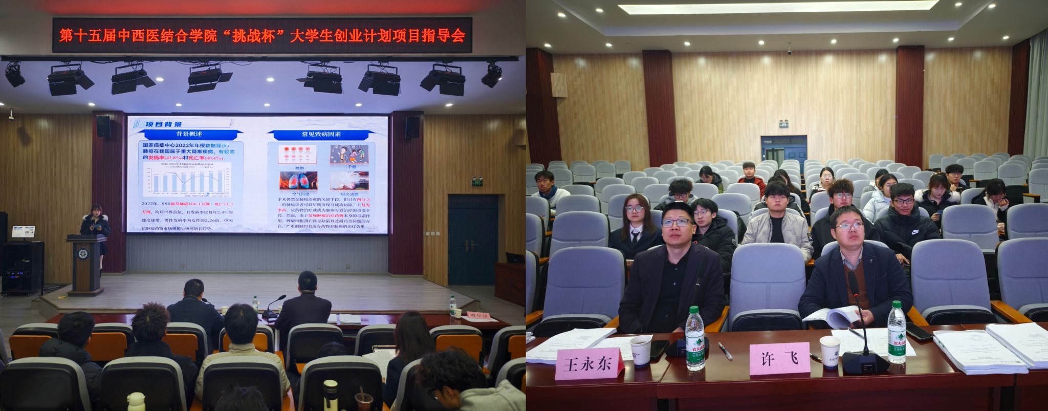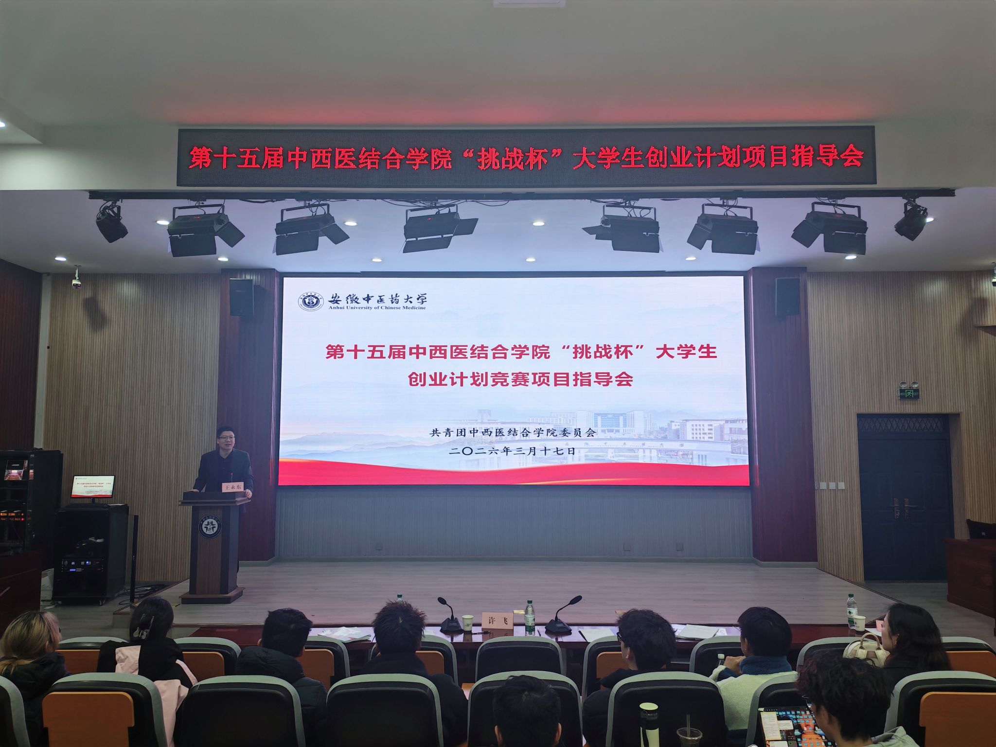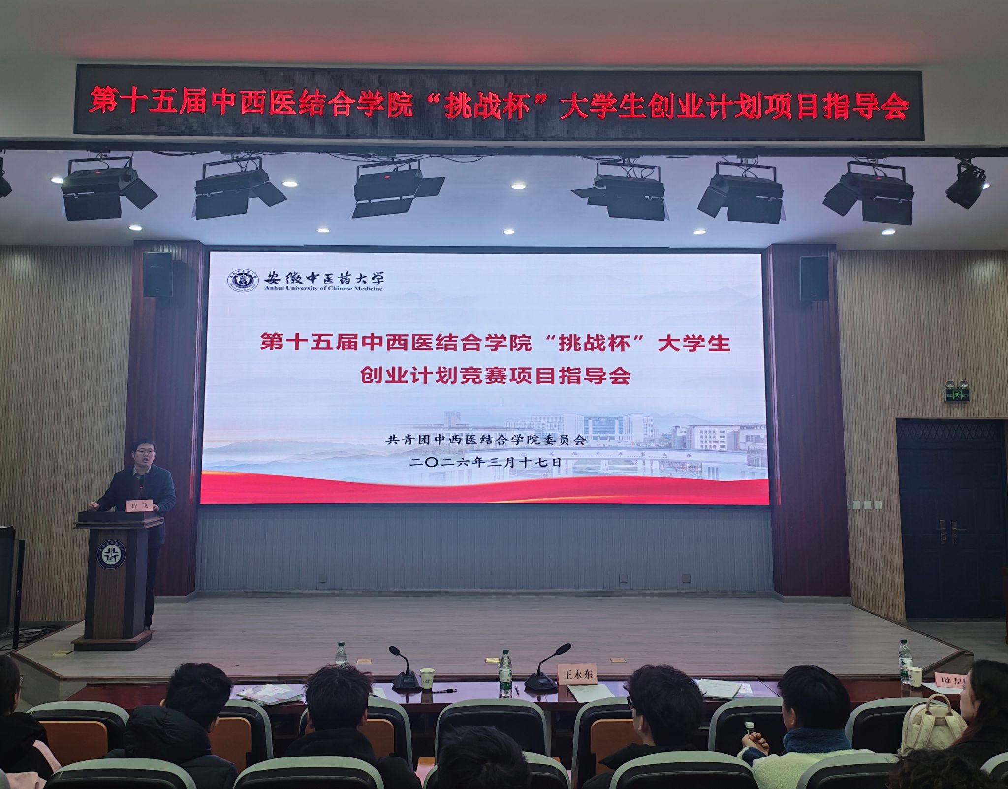 为打磨晋级校赛的“挑战杯”参赛项目,提升核心竞争力,中西医结合学院联合大学生“一站式”岐黄社区,在第十五届“挑战杯”大学生创业计划竞赛院级选拔赛落幕后,特邀安徽省青企协副秘书长许飞、安徽大学双创学院副院长王永东来院指导,为学院遴选晋级校赛的参赛作品开展专题讲座与一对一精准点评,学院各参赛团队成员及指导教师全程参与活动。本次备赛指导会由学院党委副书记彭青和主持。
