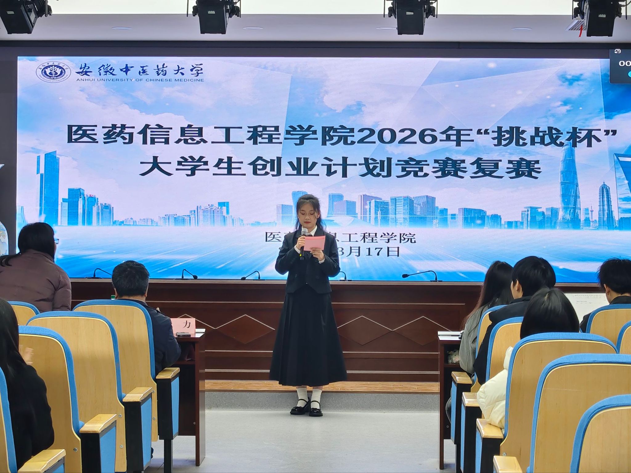 为激发学生创新潜能与创业精神,深化创新创业素质教育,搭建专业知识与社会实践结合的实践平台,3月17日,医药信息工程学院2026年“挑战杯”大学生创业计划竞赛复赛顺利开展。学院党委书记高霞,党委副书记王向阳,党委委员、副院长阚峻岭,医学工程系主任金力参加并担任评委。