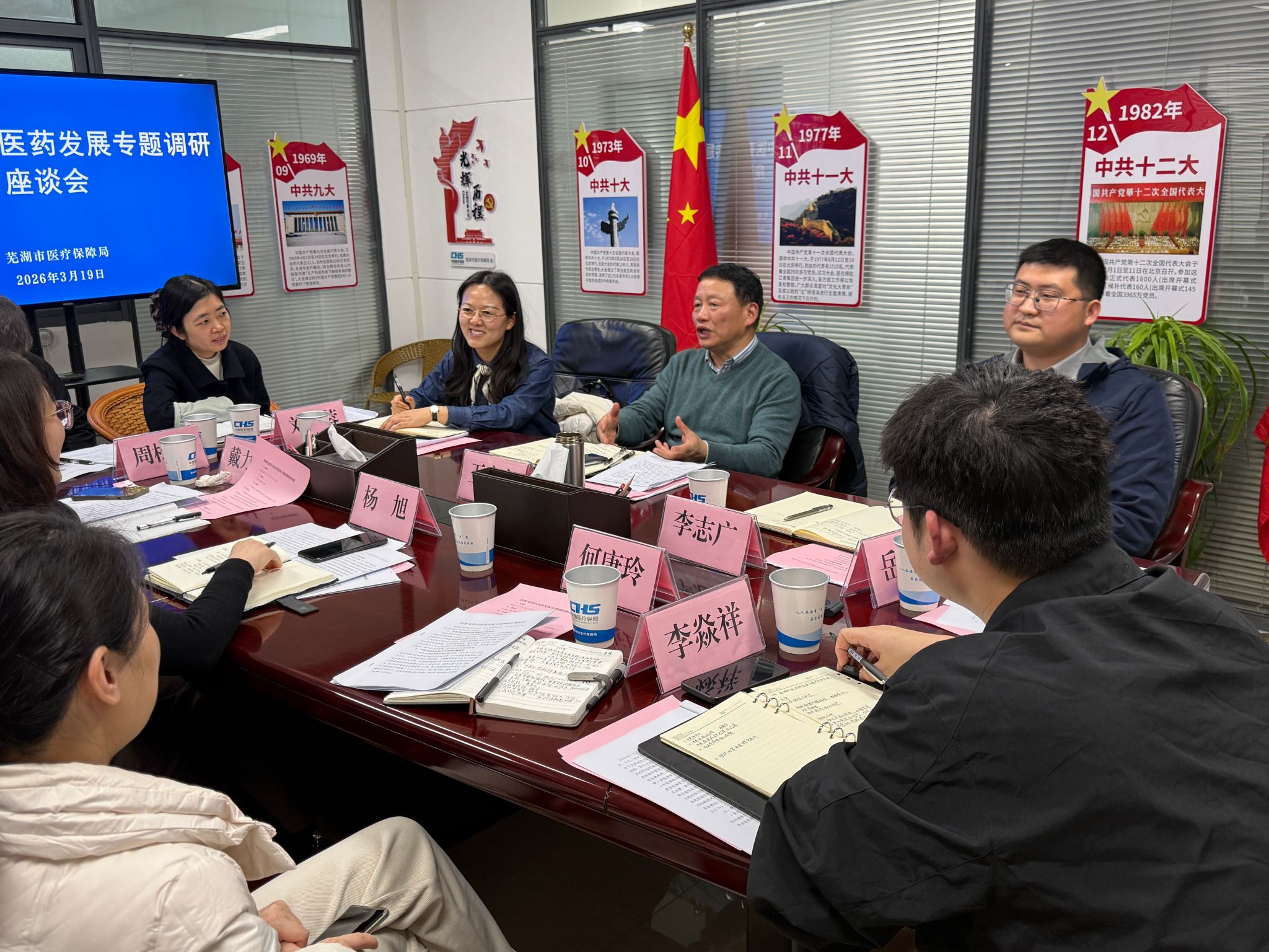 为深入贯彻国家关于促进中医药传承创新发展的决策部署,受安徽省医疗保障局委托,医药经济管理学院承担了2025年度省医保局重点课题《医保支持中医药发展效果评估及改进建设研究》。3月19日,在安徽省医疗保障局医药服务处一级调研员王庆安带领指导下,医药经济管理学院医保系主任李志广博士、刘子琼博士、研究生岳婷婷等课题组成员一行,赴芜湖市医疗保障局开展专题调研。