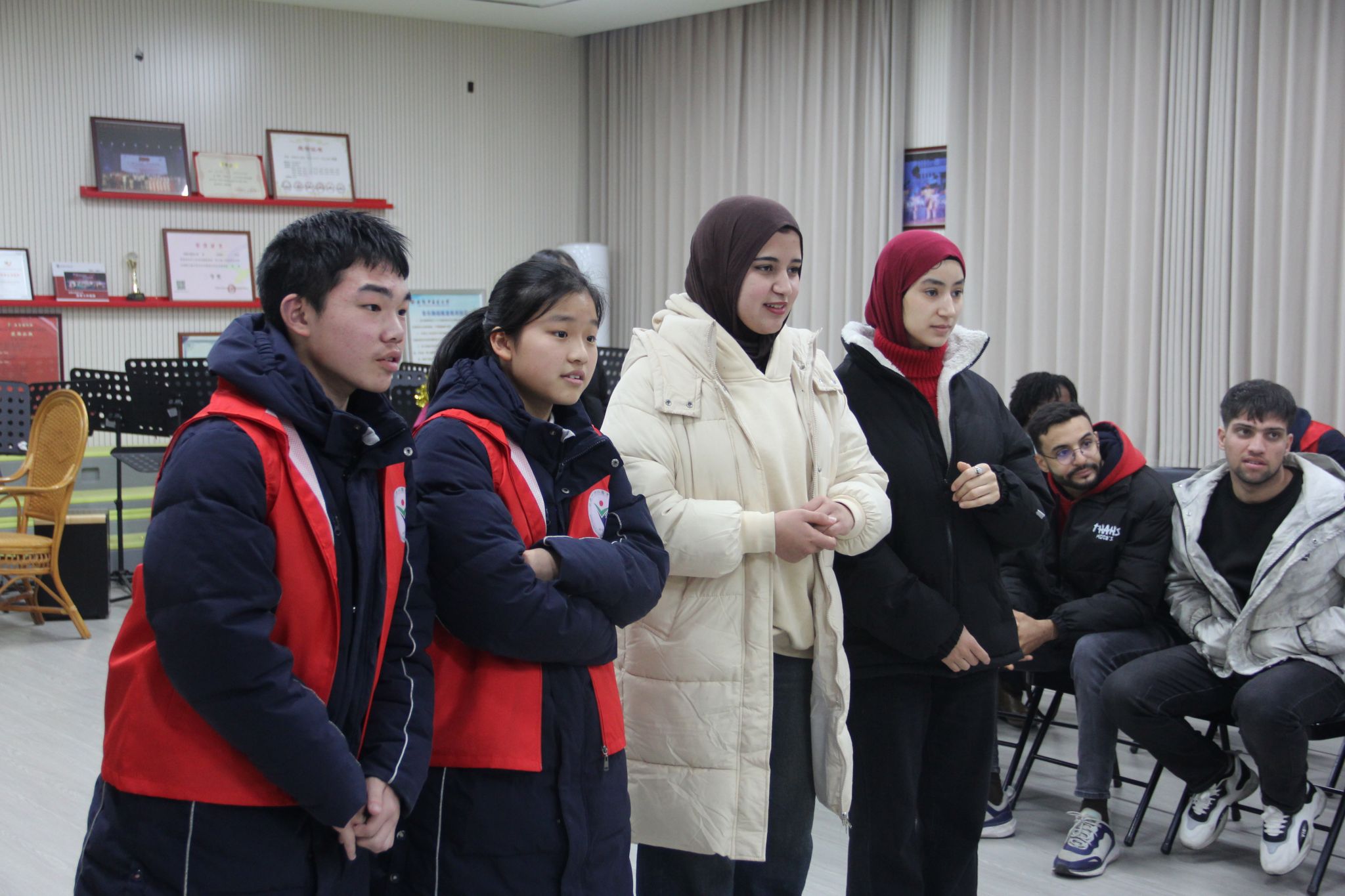 学院精心统筹志愿力量,组建由“杏林研苑”优秀研究生志愿者、“文心美苑”分社区学生骨干及学院留学生组成的志愿服务队,为同学们打造集知识科普、文化体验、趣味互动于一体的实践活动。在学校的中药资源中心、普通话测试中心,中外志愿者携手开展中医药文化科普,讲解标本故事、带领辨识中草药,让同学们感受传统中医药文化魅力。在普通话推广环节,通过趣味发音、绕口令互动引导规范用语,留学生志愿者参与交流并为中学生们送上学习纪念资料。在心理健康团建模块,中外志愿者共同设计互动环节,让同学们在协作中学会沟通,释放活力。