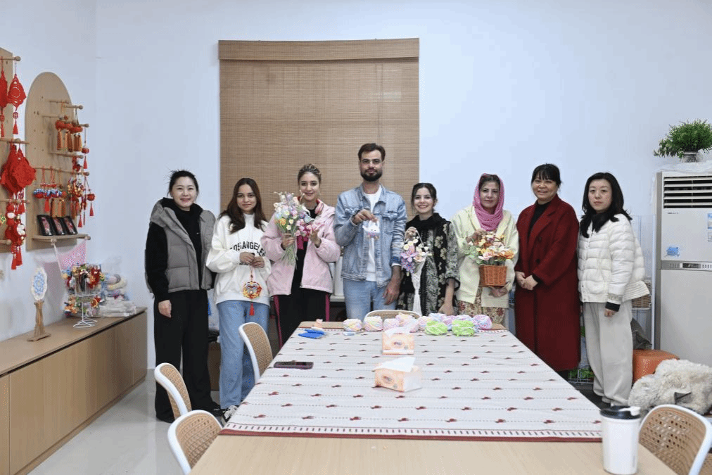 3月18日上午,人文与国际教育交流学院组织5名留学生,在许晶晶、程玲和苏昕老师的带领下,前往瑶海社区浍爱编织坊,参与“巧手匠心学编织”主题文化体验活动,并在活动后接受了中国新闻社的采访。