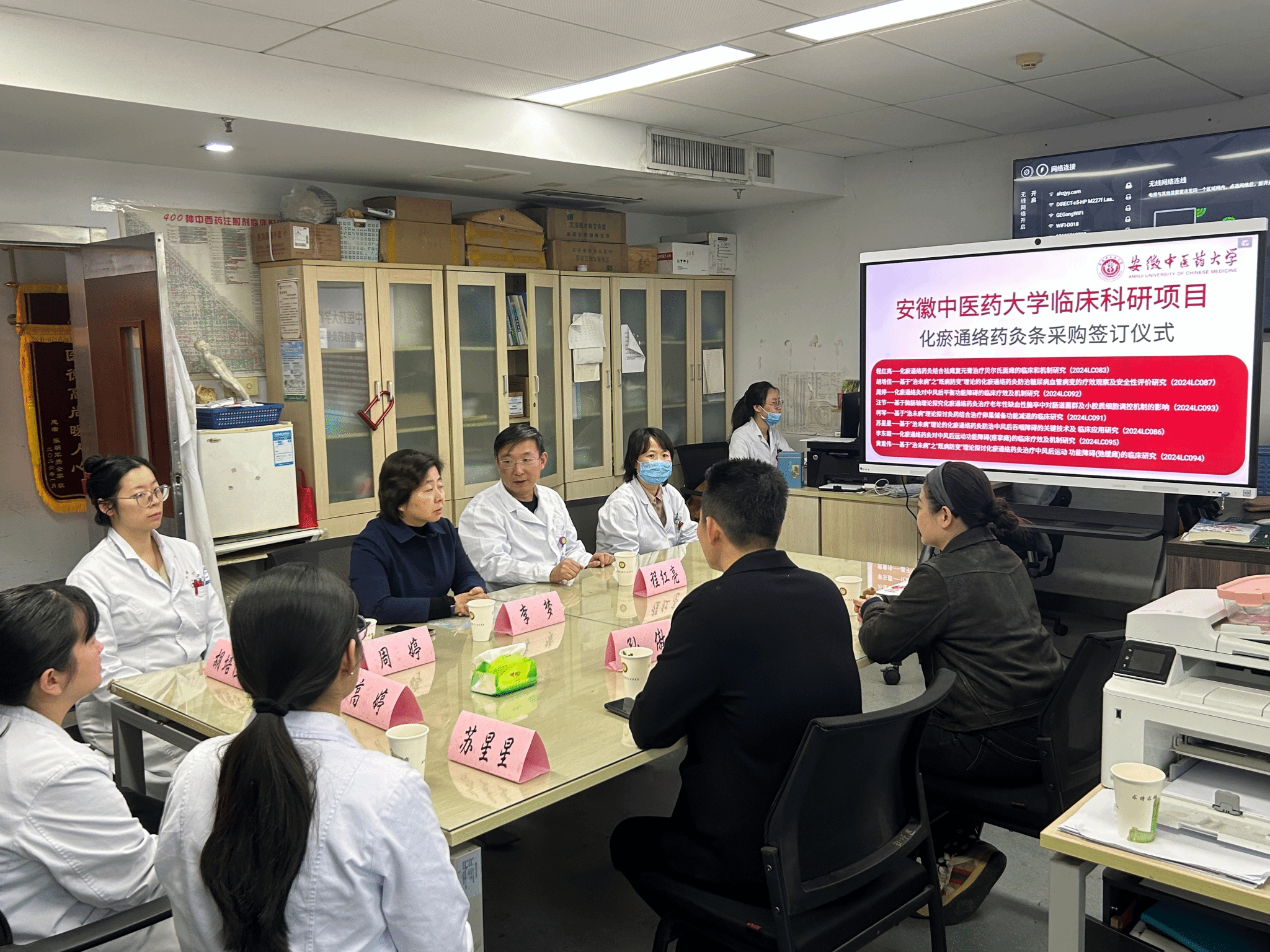 4月7日,安徽中医药大学临床科研项目“化瘀通络药灸条”采购签订仪式在第二附属医院顺利举行。此次签订旨在进一步深化产学研协同创新,推动中医药特色技术在临床科研中的转化应用,为中医药事业高质量发展注入新动能。第二附属医院副院长李梦,脑病五科科主任、主任医师程红亮,亳州市艾可舒医疗科技有限公司总经理孙傲及相关科研团队代表出席仪式。