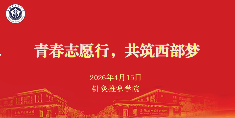 2026年4月14日晚,学校大学生“一站式”岐黄社区“灵枢针苑”分社区、针灸推拿学院分团委举办“青春志愿行,共筑西部梦”西部计划报考线上经验分享会,吸引学院毕业生积极参与。活动旨在帮助青年学子深入了解西部计划政策,明确报考方向,激发投身国家基层建设的热情。