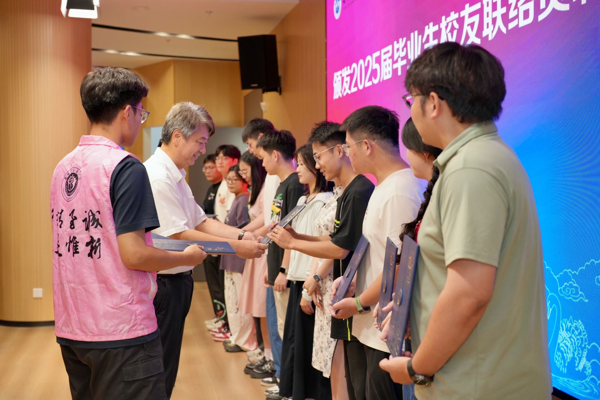 聂久胜和彭代银为147名毕业生校友联络员颁发了聘书。