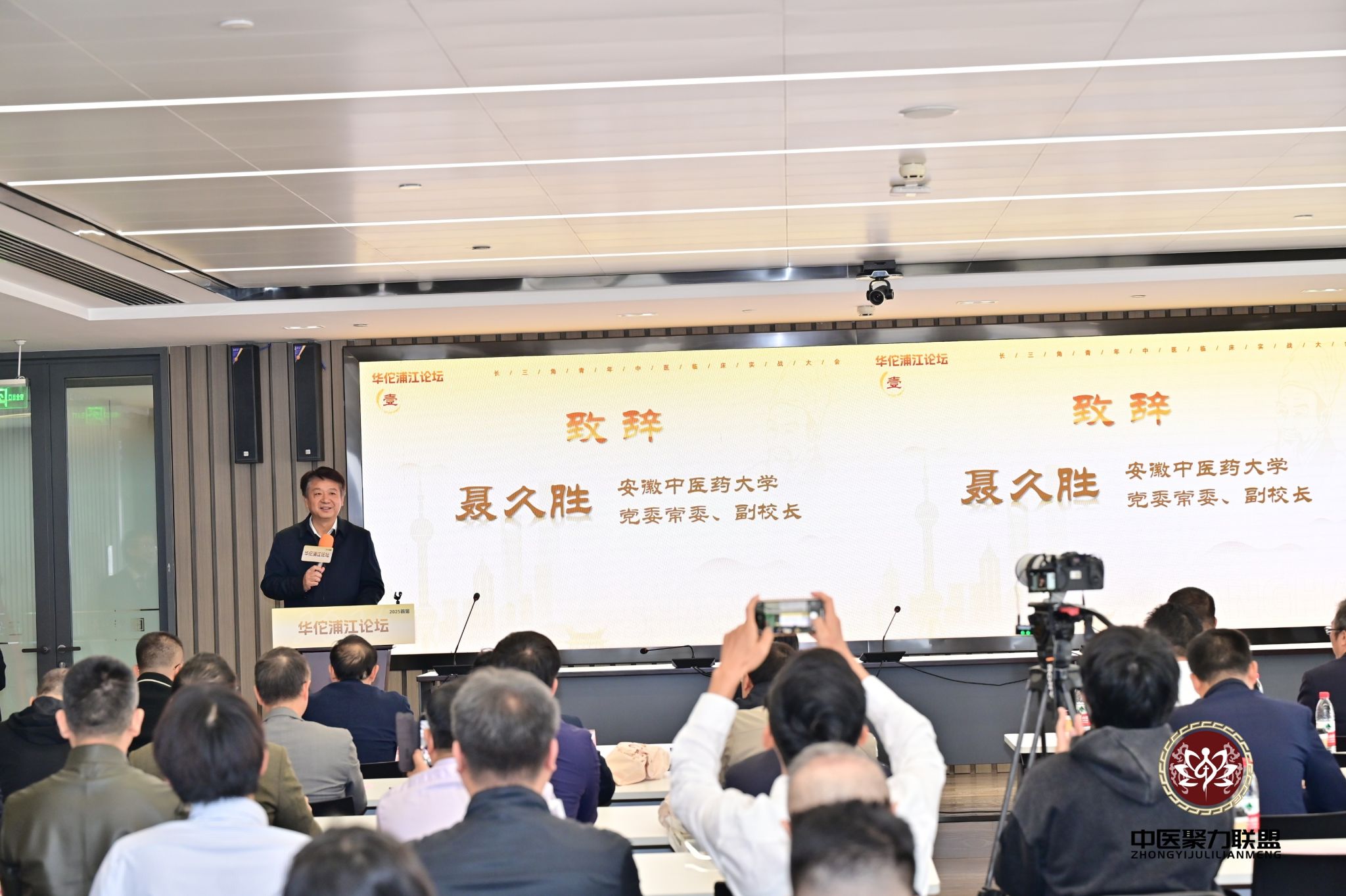 11月1日,由上海长三角智慧医药科技创新促进中心主办、安徽中医药大学上海校友会承办的首届“华佗浦江论坛暨长三角青年中医临床实战大会”在上海陆家嘴华安徽客厅成功举办。我校党委常委、副校长聂久胜应邀出席并致辞。