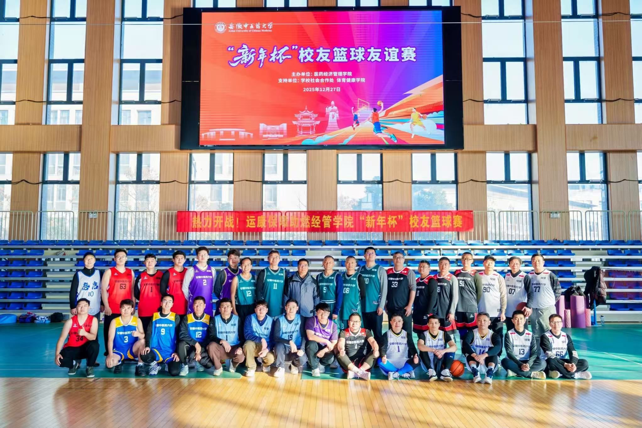 12月27日上午,医药经济管理学院在少荃湖校区室内篮球场成功举办“新年杯”校友篮球友谊赛。来自全国各地的校友与学院教职工齐聚一堂,以一场激情澎湃、温情洋溢的篮球大派对,共叙同窗情谊,凝聚奋进力量,为2025年注入活力与希望的收官之笔。